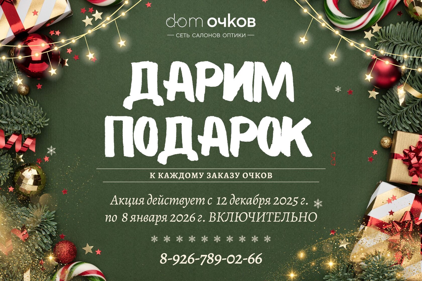В преддверии Нового Года, сеть салонов оптики «Дом Очков» начинает радовать всех клиентов нужными и приятными подарками!